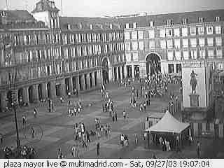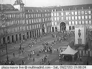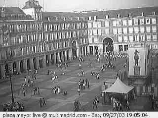 heute ist jubiläum, denn heute vor zwei jahren sind wir zwei, meine liebste und ich, zusammengekommen. nun ist sie aber gerade in madrid, und wir konnten uns nicht sehen. das heisst, ich hab sie doch gesehen… hier von meinem schreibtisch aus, auf dem plaza mayor in madrid….